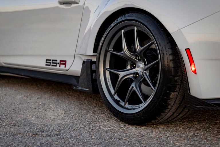 Antes de culminar aquí con el diseño del auto y lo que conlleva con él en el apartado de la aerodinámica, en la parte trasera cobra vida ya que con todo lo anteriormente mencionado podrá albergar unos neumáticos más grandes que estarán montados en unas ruedas de aleación de magnesio en medidas de 20×13 pulgadas en la parte trasera teniendo un drástico aumento en la superficie de contacto para una mejor tracción y maniobrabilidad, y en la parte frontal serán de medidas 20×11 las cuales son fabricadas por MP Wheels las cuales les llevo 15 años desarrollarlas, ya que esta experiencia de materiales en BlueTech Global hace que cumplan con las especificaciones de los fabricantes de equipos originales (OEM) y de competición.