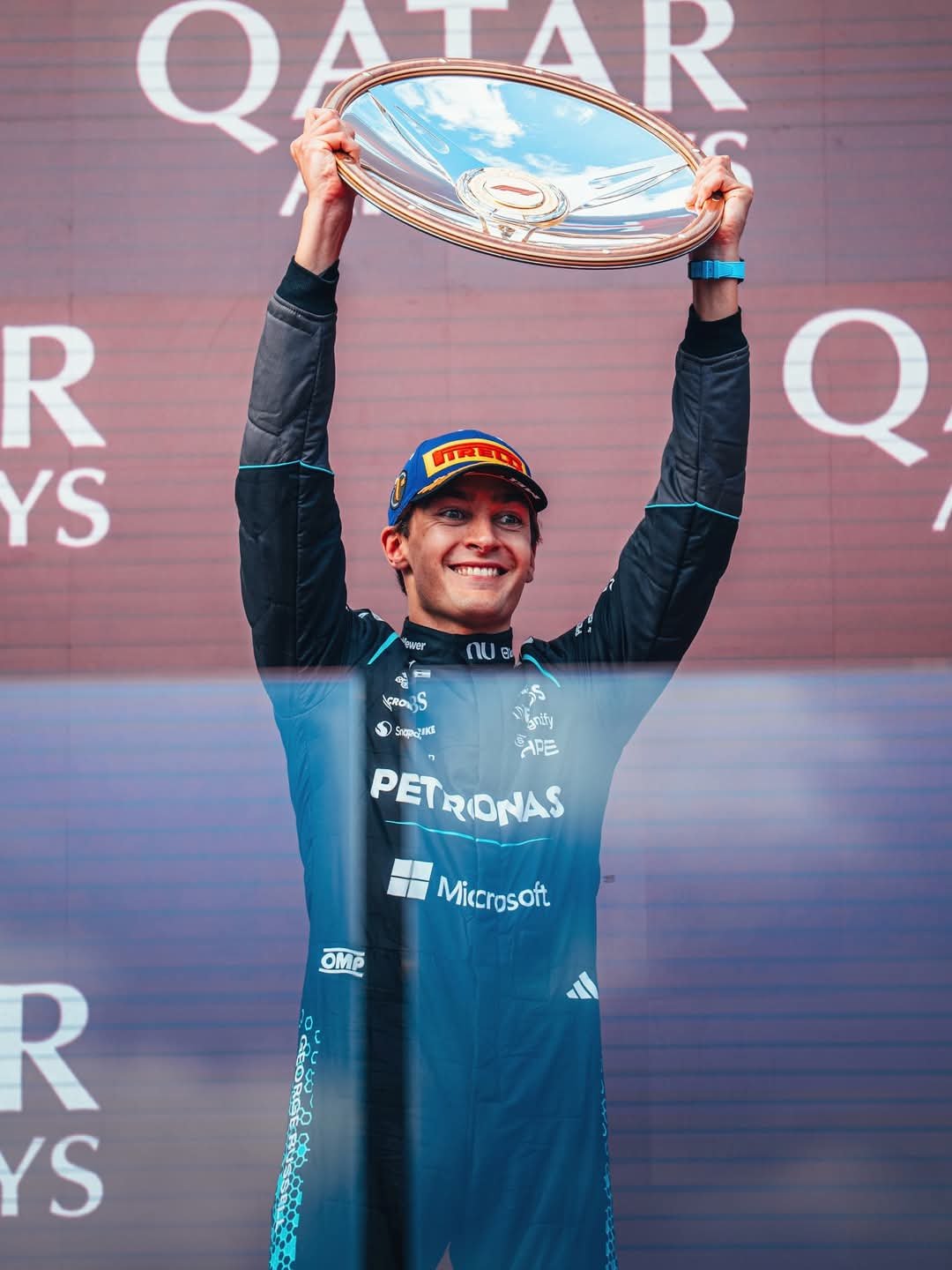George Russell: “¡Al principio fue una carrera muy reñida! Empecé mal y tuve que librar unas batallas muy reñidas con Charles al principio, así que estoy muy contento de haber cruzado la línea de meta”.