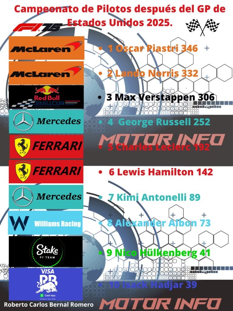 Que tal amantes de la velocidad, espero que estén teniendo un agradable día, este fin de semana que paso se realizó la ronda número 19 del Campeonato Mundial de la Fórmula 1 dando inicio con la gira americana en COTA (Circuit of The Americas – Circuito de las Américas) conformando 4 carreras que se disputaran en este continente teniendo de todo un poco, para ello el formato sprint se hizo presente y con ello otorga más puntos, por lo que la lucha por el campeonato desde que Max empezó a recortar puntos se ha vuelto interesante y con ello llamar la atención del público con los últimos resultados del piloto neerlandés ya que ha recortado de manera magistral puntos tanto a Norris y a Piastri siendo el líder del mundial de pilotos, por lo que el público ya ha puesto sus esperanzas con que gane su quinta corona, por lo que este fin de semana el equipo de la naranja mecánica no tuvo el esperado, así como otros equipos que si obtuvieron buenos resultados como otros inesperados, sin más comencemos.