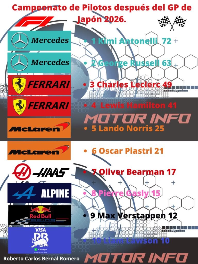 Oscar Piastri en esta tercera ronda tuvo una mejor recuperación en cuanto a las dos anteriores rondas donde no pudo estar presente en ambas carreras principales, ya que en Australia siendo su casa durante la vuelta de reconocimiento perdió la parte trasera del auto el cual lo hizo perder el control de su auto y después colisionar contra el muro y en China si pudo estar en la parrilla pero el equipo por radio le pidió que fuese a boxes y después de eso ya no salió al igual que su compañero Norris, quedando fuera de la pelea ambos pilotos, pero en Japón el piloto australiano volvió a ser ese gran piloto el cual ha demostró tener una gran capacidad detrás del volante y para muestra de ello en esta ocasión obtiene su primer podio así como ser piloto del día, pero al largar rápido tomo el liderato superando a Antonelli por lo que era el nuevo líder, Russell también le estaba dando pelea pero no fue suficiente ya que Piastri logro adelantarlo y así mantenerse en P2 hasta que vino una safety car, que la reiniciar la carrera de la pausa que hubo pues este no pudo darle alcance a Kimi ya que con el resto de vueltas iba tomando más ventaja la cual tuvo una de 14.5 segundos siendo hasta ahora la mayor ventaja del piloto italiano, por lo que Piastri se mantuvo en P2 mientras que su compañero con todo y detalles el fin de semana logra estar en P5. Así que podemos decir que la confianza y motivación serán combustible para el piloto australiano después de no poder correr en dos Grandes Premios, eso si ya había conseguido sus primeros puntos en carrera sprint pero en una carrera principal solo hasta Japón. Incluso anexamos lo que Norris comento vía Motorsport como experimento esta carrera al mencionar que la batería se había desplegado sola y explica los adelantamientos que hubo con Hamilton: “No quería adelantar a Hamilton, pero la batería se desplegó sola. En algunas situaciones ni siquiera quería adelantar a Lewis. Es solo que mi batería se despliega, yo no quiero que se despliegue, pero no puedo controlarlo. Así que le adelanto, y luego me quedo sin batería y él simplemente me vuelve a pasar volando. Esto no es correr. Cuando estás simplemente a merced de lo que entregue la unidad de potencia, el piloto debería tener al menos el control sobre eso, y no lo tenemos. Las carreras pueden parecer espectaculares en la televisión, pero desde dentro del coche, la competición no es ni mucho menos tan auténtica como debería ser”. Eso sí, Norris con algunos detalles que mostro en su auto se posiciono en P5.