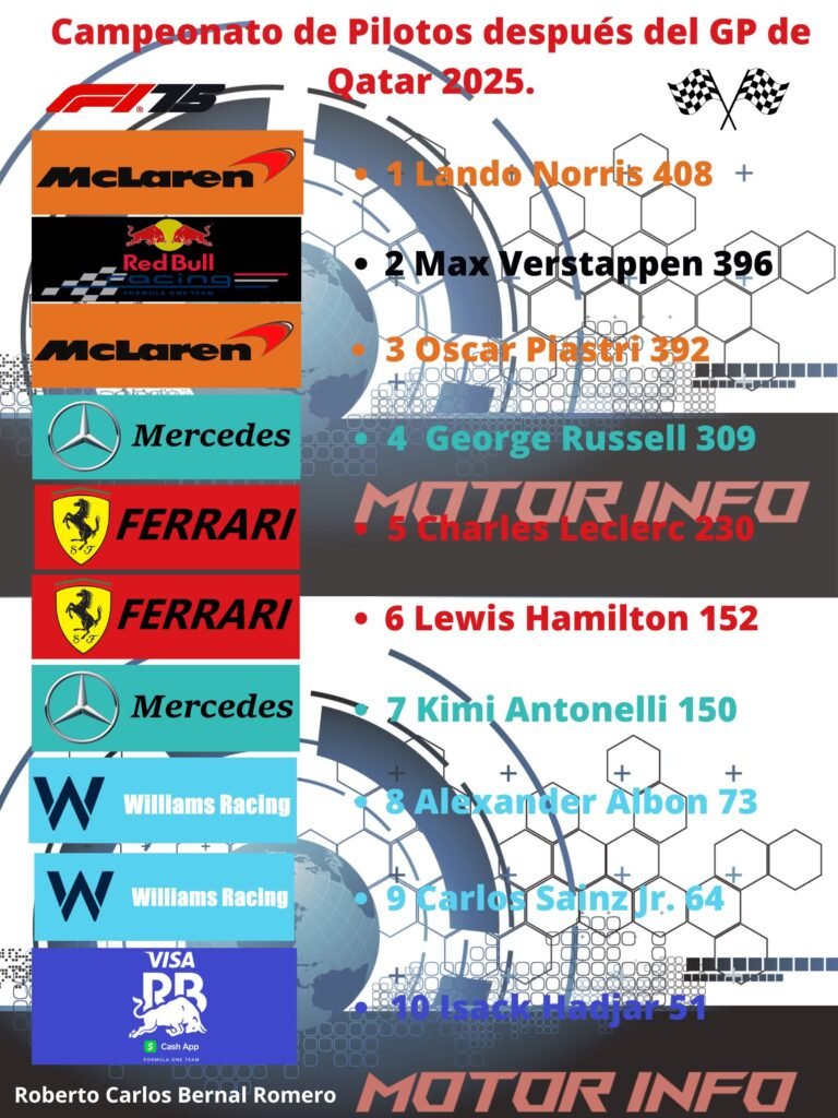 Con Max siendo el ganador de la carrera en Qatar, seguido de Piastri en P2, hubo un P3 especial y ese fue para Carlos Sainz Jr. quien en esta ronda consigue otro podio para él y el equipo luego de salir en P7, así como obtener valiosos puntos en esta ronda ya que no solo se limitó a los puntos en el día domingo, sino que en la carrera sprint también consiguió otro poquito al terminar en P8 siendo el último lugar que otorga puntos, llevando alegría al equipo británico y como dato, se ha convertido en el segundo piloto de Williams que consigue un doble podio desde el año 2015 pero serian tres en total ya que en la carrera sprint de Estado Unidos en Texas consiguió un podio al estar en P3, el otro seria en Azerbaiyán de igual forma en P3 y otro más aquí en Qatar con un P3, siendo un gran fin de semana para el piloto madrileño.
